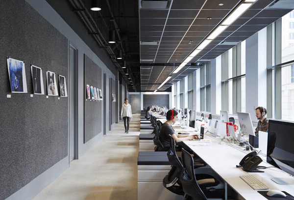 首先,拆除所有沿窗而設(shè)的獨(dú)立辦公室,所有會(huì)議室都裝上透明的落地玻璃。打開后的開放空間擁有良好的自然光線。開放的辦公理念也有利于促進(jìn)團(tuán)隊(duì)合作和臨時(shí)發(fā)起的頭腦風(fēng)暴。