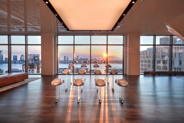精致皮革裝飾的電梯廳面向開敞明亮的休閑區(qū),高大的落地玻璃窗將遠(yuǎn)處哈得遜河的美景盡收眼底。設(shè)計(jì)取消傳統(tǒng)的接待臺(tái)模式,以簡(jiǎn)約的現(xiàn)代禮遇打造個(gè)性化的服務(wù)體驗(yàn)。