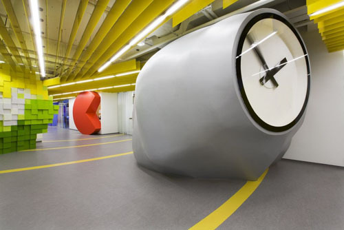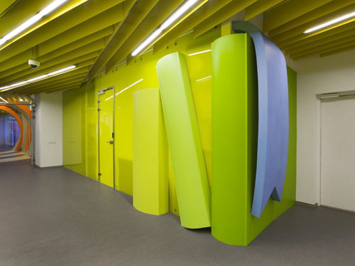 這是俄羅斯**的IT公司——Yandex公司的辦公室設(shè)計(jì),設(shè)計(jì)師手法很奇特,大膽,浮雕的指引,大大地時(shí)鐘,明快的色彩和從地面延生到頂部的分割隔斷,色彩豐富,創(chuàng)意十足,辦公室被打造得的清新活潑,而且將IT公司那種朝氣蓬勃、活躍靈動(dòng)的氣質(zhì)表現(xiàn)得****。