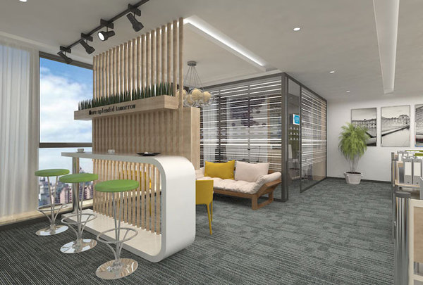 茶水間與休息區(qū)域的設(shè)計(jì),設(shè)計(jì)師在設(shè)計(jì)的時(shí)候,利用簡(jiǎn)潔的隔斷分離手法,將空間一份為二,即節(jié)約成本、又節(jié)約空間,同時(shí)符合企業(yè)的需求。