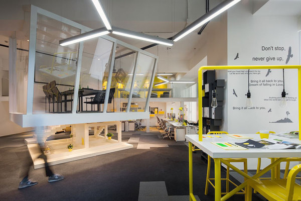 會(huì)議室的設(shè)計(jì),設(shè)計(jì)師將其安置在空間的中心,一則做為企業(yè)的亮點(diǎn)存在,二則懸空的空間給人以俯視的感覺(jué),本空間不論是內(nèi)部還是外部都攜帶創(chuàng)意的屬性,這樣的空間使人靈感無(wú)限。