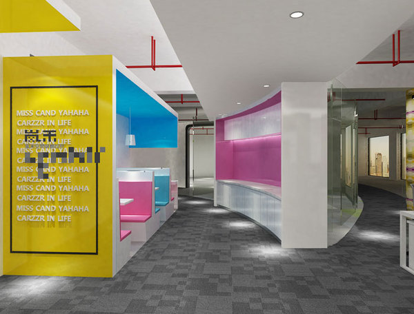 前臺區(qū)域的設(shè)計,設(shè)計師將空間的主色調(diào)以白、黃、灰來展現(xiàn),色彩在設(shè)計師的手法之下,被重新打亂與重新組合,空間因為色彩的加入也被設(shè)計師定位成各種屬性,色彩與空間搭配得天衣無縫、滴水不漏。