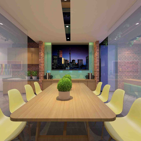 會議室的設計,設計師采用取中的手法,將會議室很好的融入辦公室區(qū)域與茶水間之間,使的空間得到進一步利用。