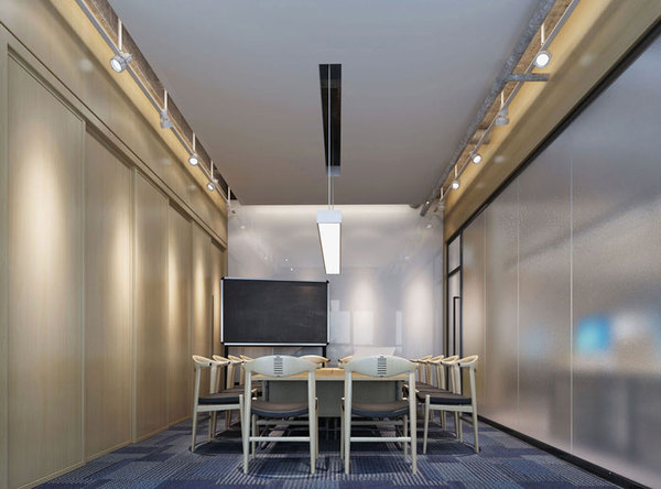 會議區(qū)辦公室的設計,設計師將光效弄得特別亮,很有潮氣活力,很有層次感,有由淺至深地了解一個品牌的寓意。