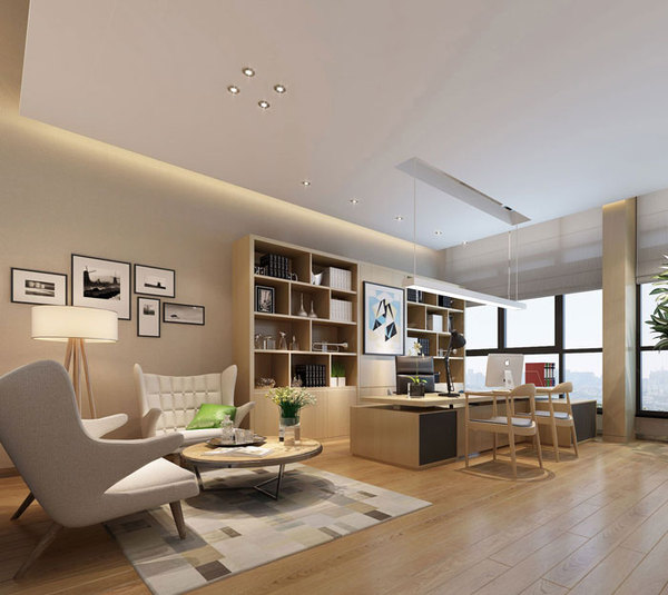 總經(jīng)理辦公室的設計,設計師主要采用軟裝的相互搭配對空間進行設計,光源的設計也是設計師設計的一大方面,軟裝和光源構(gòu)成了一個完整且舒適的總經(jīng)理辦公室。