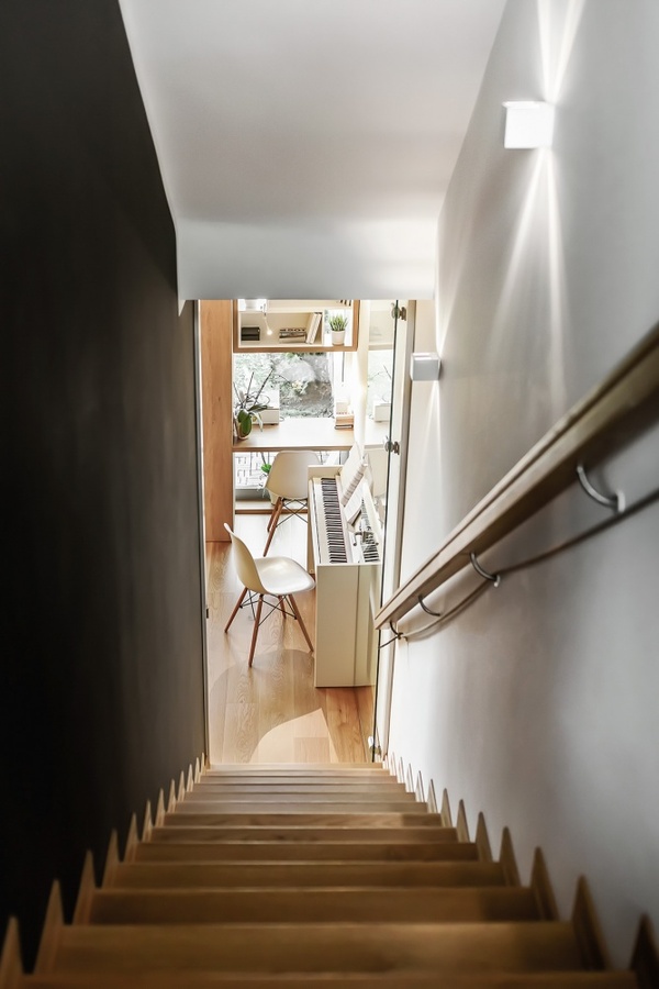 設(shè)計團隊盡可能充分的利用空間的每一角落,在玻璃落地窗邊,定制出簡易實用的工作區(qū)域,練琴房也擺放于此,讓陽光、美景、伴隨著每天的工作時光。