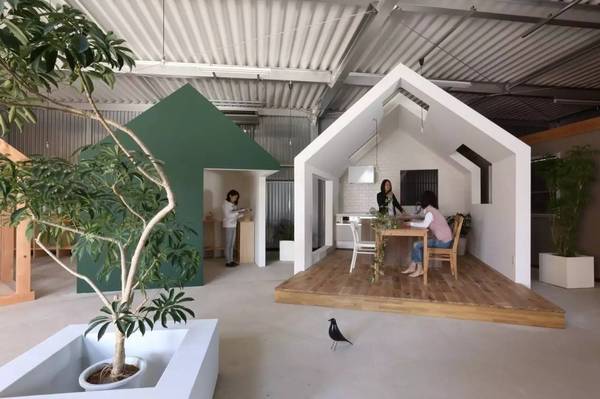 由ALTS Design Office設(shè)計(jì)的位于日本滋賀縣的Omihachiman新工作室,業(yè)主希望可以滿足不同的群體使用,同時(shí)尋找一個(gè)能夠令他們自由談話的工作室。設(shè)計(jì)者為室內(nèi)創(chuàng)建了四種“房子形狀”的位置,通過不同尺度的模塊形狀,適應(yīng)不同人群的社交空間。