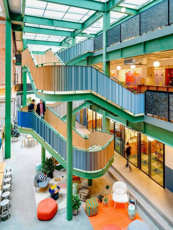 新建的聯(lián)合辦公空間內(nèi)保留了一些舊工廠的元素,設(shè)計(jì)師 Miguel Mckelvey 刻意營(yíng)造出工業(yè)化“粗糙”、“地下”的風(fēng)格。