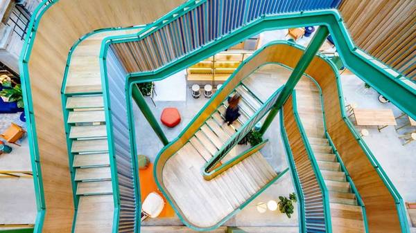 其中讓 McKelvey *自豪的改造就是立在中間的旋轉(zhuǎn)樓梯,可以看到樓下的全景,電梯被隱藏在了沒(méi)有人會(huì)注意到的角落,“逼”著人們走樓梯,去互相打招呼,人與人之間見(jiàn)面的次數(shù)多了,互相眼熟,也增加了社交的機(jī)率。