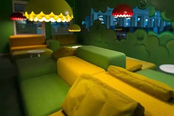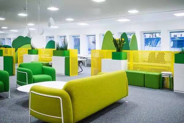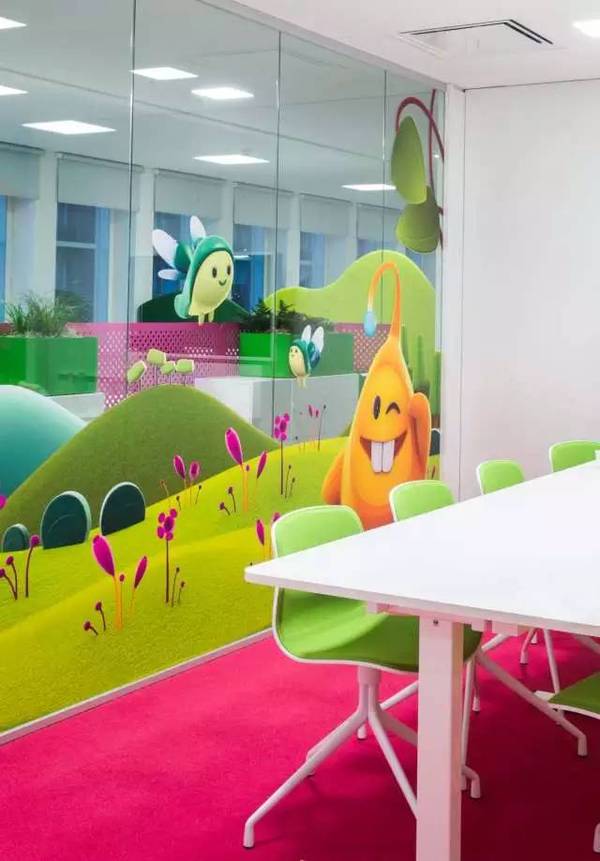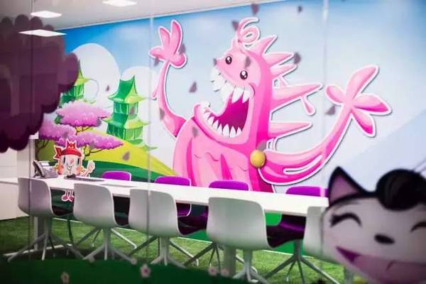 游戲開(kāi)發(fā)商國(guó)王(“糖果粉碎傳奇”的創(chuàng)造者)聯(lián)系設(shè)計(jì)師開(kāi)發(fā)他們的新辦公室概念,其結(jié)果是一個(gè)色彩鮮艷的辦公室。