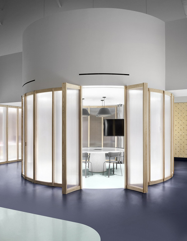 Gruppo Campari對(duì)于多倫多辦公室的設(shè)計(jì)要求十分簡(jiǎn)單,即創(chuàng)造一個(gè)充分體現(xiàn)公司精神并且可以激發(fā)使用者靈感的空間。Campari標(biāo)志性的海報(bào)有上百年歷史,種類(lèi)豐富,充滿(mǎn)創(chuàng)意。建筑師從海報(bào)和食材中提取顏色、圖案以及形狀,并將它們層層重疊,直到形成一個(gè)平衡的三維空間。