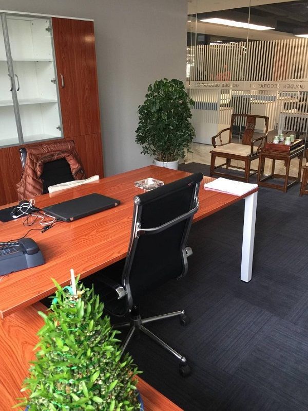 緊接著看到的是貴賓接待區(qū),這一部分的辦公室設(shè)計分為兩塊。一塊是中式雕花桌椅搭配屏風樣式的辦公室隔斷,另一部分則是現(xiàn)代風格的皮質(zhì)包邊椅子搭配木質(zhì)簡單書柜。這兩個部分的辦公室設(shè)計各具特色,但又在顏色上互相搭配,使得整個辦公室設(shè)計更加和諧。