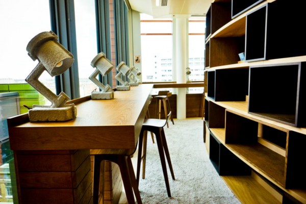 辦公室辦公桌桌板前緣應呈圓滑狀的斜邊設(shè)計,或是四分之一圓設(shè)計,以避免傳統(tǒng)的直角設(shè)計會壓迫手肘部份血管的弊病。目前的辦公桌設(shè)計已到了思考延伸的地步,員工在辦公桌前不一定要坐著,有許多需要站著的工作,例如專職查詢、制圖之類的工作,這就需要較高的桌面。此外,在辦公室辦公桌的材質(zhì)選擇方面,也不再局限于鋼制一種,多樣材質(zhì)如強化玻璃、皮革、木材、鋁合金的加入讓辦公桌椅的變化更大,也呈現(xiàn)出更加活潑的面貌。
