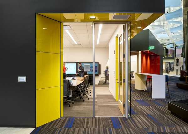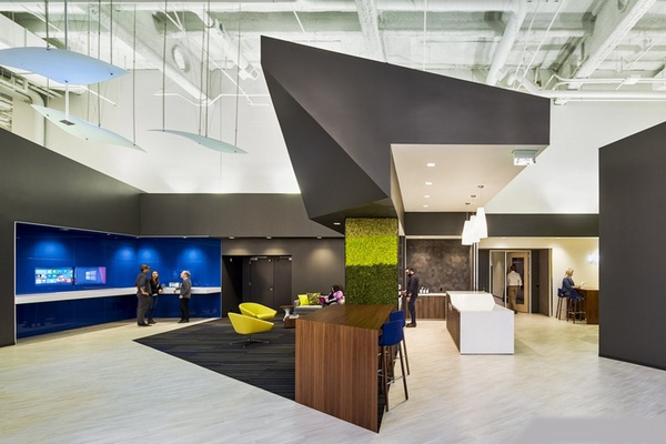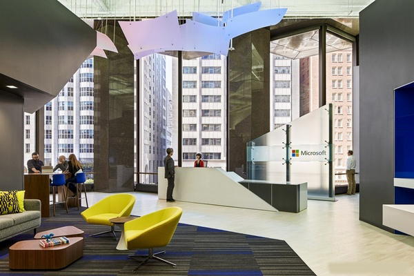 今天,上海辦公室裝修設計公司-領企裝飾要與大家分享的是,微軟集團位于美國舊金山的辦公室裝修設計。辦公室的樓面計劃利用了視野和微軟公司的商標來創(chuàng)造第一印象,既引人注目又能馬上被識別出來。目標是在人、場地和技術之間創(chuàng)造一個平衡。通過創(chuàng)造一個展示逐日變化的技術的陳列室,建成空間和技術之間的區(qū)別變模糊了。微軟公司的產品變成了帶領訪客穿過這個空間的車輪。