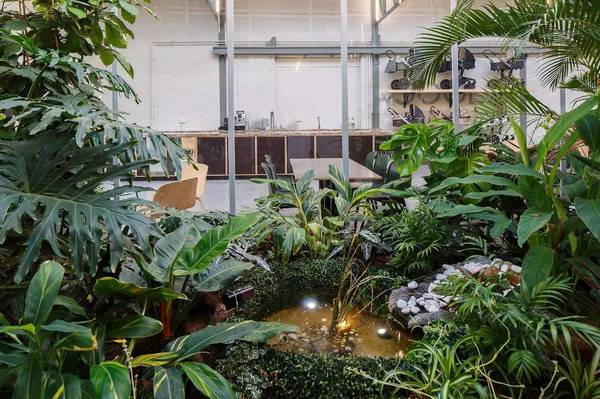 由荷蘭Space Encounters工作室為設(shè)計和制造人體工程學(xué)童車的Joolz公司,剛剛完成了位于阿姆斯特丹北部的一個1600㎡的辦公樓改造。這座玻璃屋原來作為舊倉庫,設(shè)計者首先去除底層室內(nèi)的所有墻體,利用高聳的種滿植物的玻璃屋將整個空間分成兩個長廊似的辦公室,玻璃屋一直連到屋頂,與天窗結(jié)合在一起。