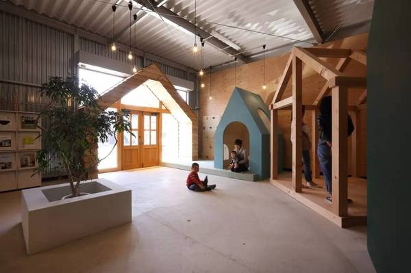 由ALTS Design Office設(shè)計的位于日本滋賀縣的Omihachiman新工作室,業(yè)主希望可以滿足不同的群體使用,同時尋找一個能夠令他們自由談話的工作室。設(shè)計者為室內(nèi)創(chuàng)建了四種“房子形狀”的位置,通過不同尺度的模塊形狀,適應(yīng)不同人群的社交空間。