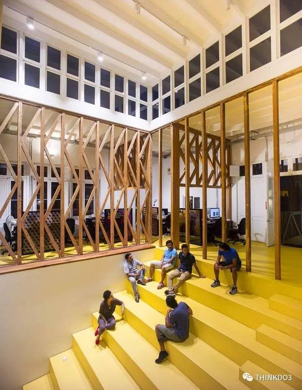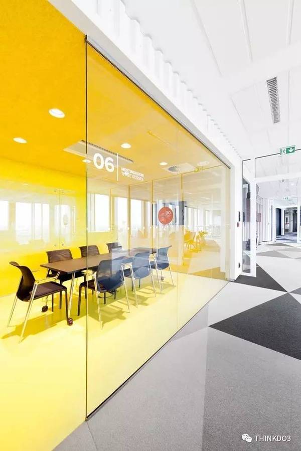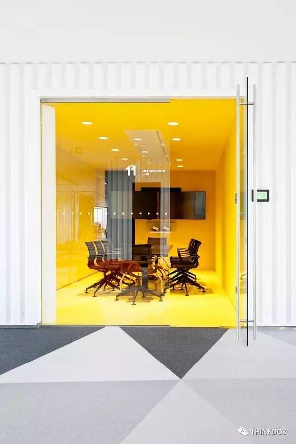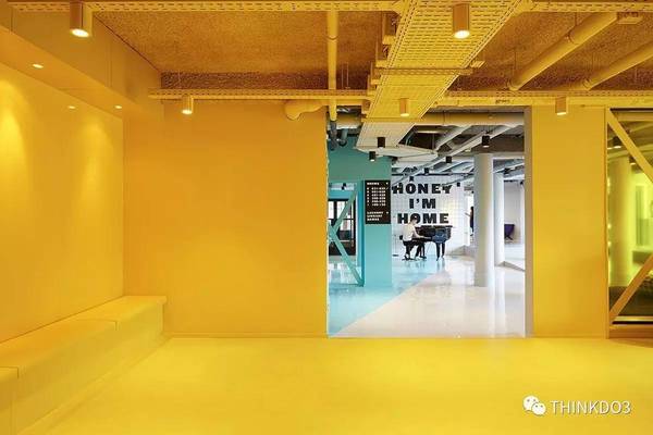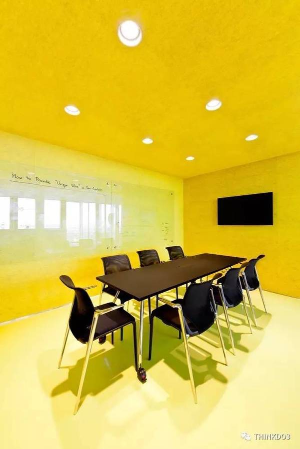 這些辦公室使用了大面積的黃色,看完整個(gè)心情都變得明亮起來了。。。