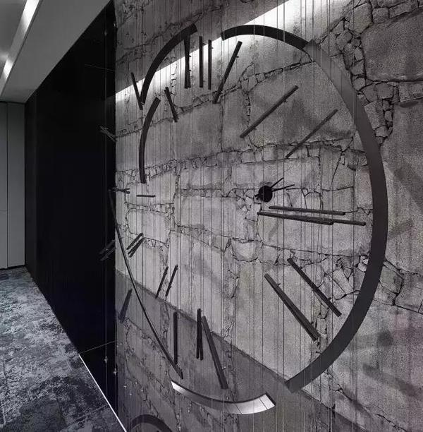 主辦公室墻面使用不銹鋼材質搭配在隨性的是墻上拼成"Time is Money",標志著企業(yè)形象與宗旨,代表著工業(yè)時代經濟快速發(fā)展的時間流動。背墻則以不經刻意的仿舊石材創(chuàng)造中世紀堡壘材質,結合古今元素,間接扣合起「時間」的主軸。