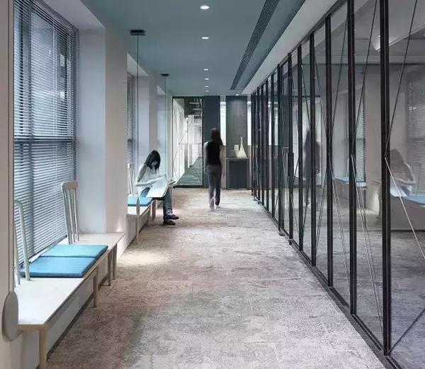 辦公室的空間分配很關鍵,主廊道及茶水間設置木質開放式座椅提供閱讀、討論與休憩,讓辦公室空間營造出流動性的時間暫留,讓人們在忙碌之余有一個小憩之場。