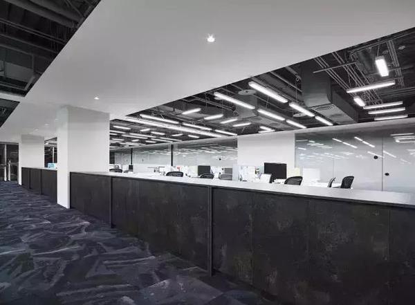 公共辦公區(qū)以黑色系為主體裝修色調,莊重、嚴正的辦公環(huán)境象征著堅毅的目標、包含著權益的決策。白熾燈簡單大氣,統(tǒng)一的布局相同的配置使公司更具凝聚力,偌大的公共辦公空間彰顯公司大氣,同時也方便人們的交流。