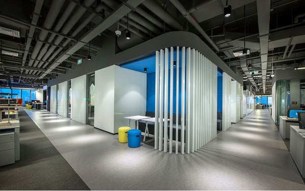 本案例采用木材表面、日光和綠色墻壁給‘休閑就餐’區(qū)域帶來了大自然的感覺。采用對比色的地板標(biāo)示出了環(huán)繞在辦公室核心地帶周圍的‘跑道’循環(huán)路線。激發(fā)獨(dú)特的全新辦公空間的創(chuàng)造力和協(xié)作性。領(lǐng)企設(shè)計:www.wrqffaf.cn(領(lǐng)企設(shè)計官方網(wǎng)站更多相關(guān)內(nèi)容)