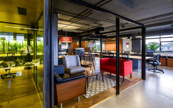 整體辦公室裝修設(shè)計(jì)以粗獷的大地色系配以隨處可見(jiàn)的綠色植物,營(yíng)造如在戶外探險(xiǎn)的氛圍,創(chuàng)建一個(gè)充滿活力的協(xié)作型工作環(huán)境。這些綠植和工位系統(tǒng)巧妙結(jié)合在一起,在長(zhǎng)時(shí)間的工作環(huán)境里,偶爾瞥見(jiàn)近旁的植物,給眼睛帶來(lái)片刻的舒緩和休息。同時(shí)這樣的氛圍營(yíng)造契合公司的品牌文化。有趣的設(shè)計(jì)元素,形成一個(gè)非常有趣的空間表達(dá)。更多辦公室裝修設(shè)計(jì)關(guān)注領(lǐng)企設(shè)計(jì):www.wrqffaf.cn
