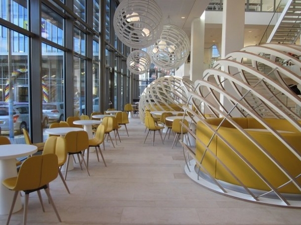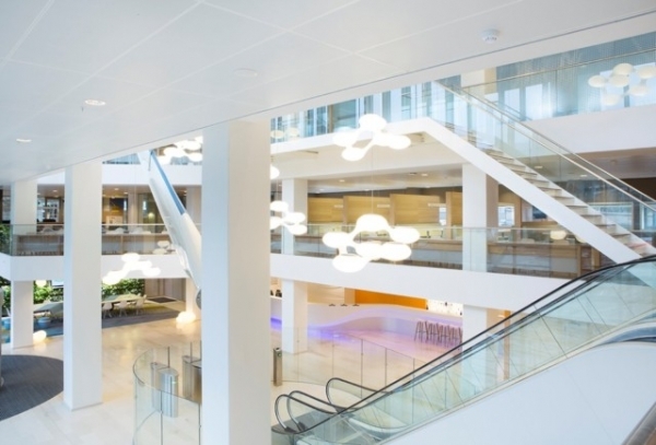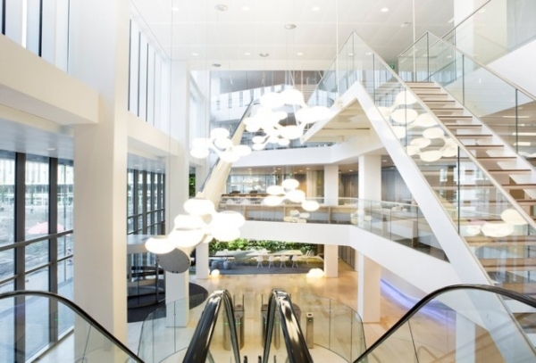 下圖的球體造型為辦公樓室內(nèi)空間增色不少: