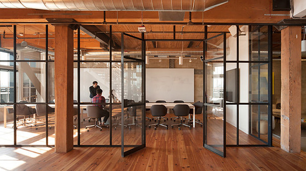 設(shè)計(jì)師用新的鋼結(jié)構(gòu)與再生木制成樓梯,連接上下樓,開放式的辦公室設(shè)計(jì)在這一基礎(chǔ)上再次放大,這種辦公室是非常利于交流的,比起封閉的辦公室,我們更能感受到團(tuán)隊(duì)氣氛。