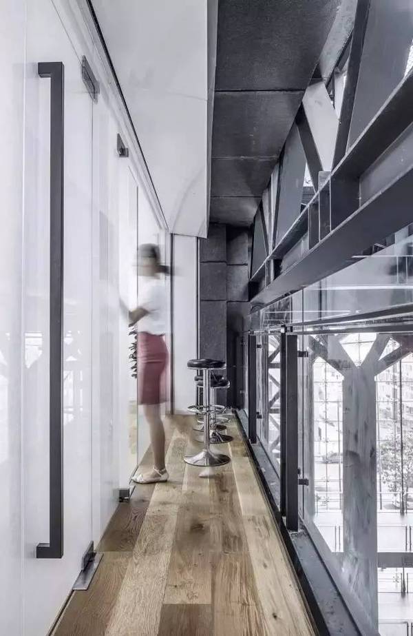 我于是用宣紙玻璃一層層地根據(jù)功能把辦公室分割成不同部分,宣紙玻璃事實(shí)上更進(jìn)一步消解整個(gè)空間的體積,對(duì)我而言,宣紙玻璃就是屏風(fēng),在視覺(jué)上。一層層的它地把公司不同功能和部門(mén)碾平在不同層次的半透明的界面上,不同層次的活動(dòng)在*前景合成一個(gè)二維的畫(huà)面,這三維的世界失去真實(shí)的時(shí)候,時(shí)間這個(gè)奇妙神奇但喜怒無(wú)常的野獸就好像被暫時(shí)困住了,結(jié)果呼應(yīng)了中國(guó)古人在繪畫(huà)和詩(shī)歌上的審美。