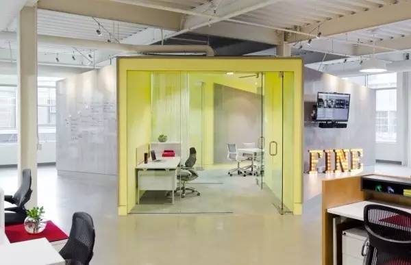 公司要求新的辦公空間是開放式的,并且給人輕松的感覺。設(shè)計(jì)師利用輕快的色彩搭配,營造了空間的整體氛圍。辦公空間中劃分出會(huì)議室、辦公區(qū)、餐廳、休閑區(qū)等。浮在空間和房屋兩個(gè)辦事處和代理機(jī)構(gòu)的會(huì)議室。谷倉的復(fù)雜形狀創(chuàng)建不同的程序區(qū)外,臺(tái)球區(qū)的機(jī)會(huì)是庇護(hù)一方而團(tuán)隊(duì)的工作空間面對廚房和開放的工作站。