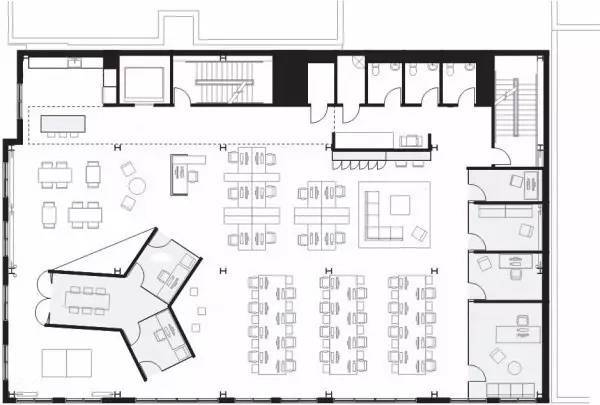 廚房是一個(gè)員工聚集的地方,為許多事件的主持群中心。從衛(wèi)生陶瓷釉面瓷磚,有霧和光澤的自定義模式,定義了一個(gè)連續(xù)的顏色從墻壁到地板的空間。書架屏幕打印/復(fù)印區(qū),提供了一種觸摸了筆記本。窗簾可以區(qū)分休息室,打開工作站來分隔空間,提供視覺的隱私。望京辦公室裝修設(shè)計(jì)哪家好?