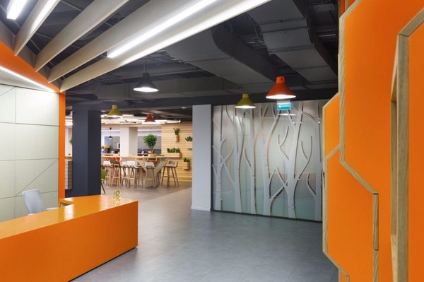 公司辦公室設(shè)計(jì)靈感主要來(lái)自于現(xiàn)代大城市的基礎(chǔ)設(shè)施構(gòu)造,工作區(qū)好比城市的商業(yè)區(qū);走廊就像城市的大街和小巷;員工餐廳展開來(lái)看就是一個(gè)可供休閑娛樂(lè)的公園。這個(gè)符合人體工程學(xué)的辦公空間,還被有效的分區(qū),這里有**的溝通區(qū),還有純天然的裝修材料,這些,為員工們高速有效的工作提供了**的辦公條件。
