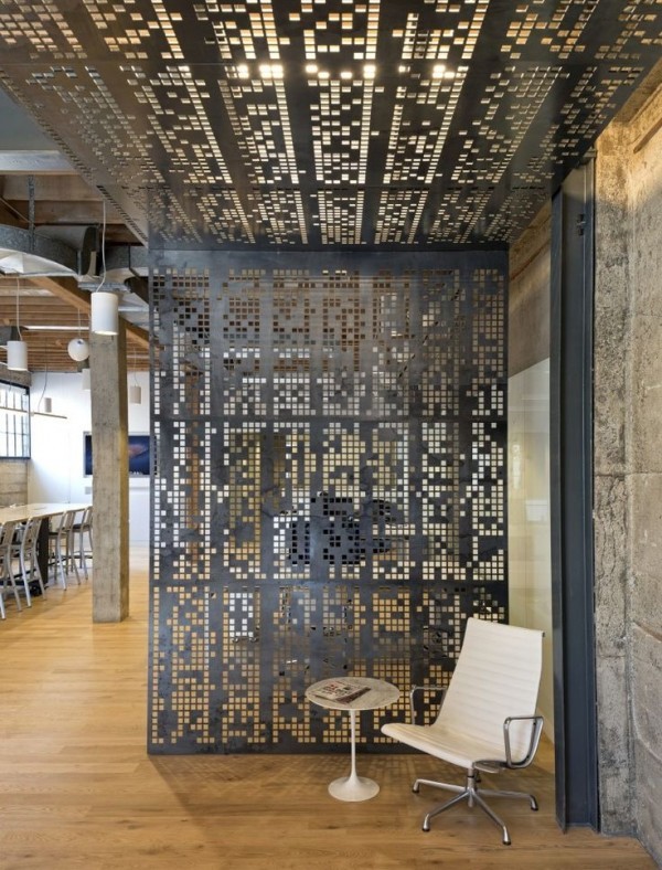從天花板延伸下來的整體一致的隔斷,金屬制的外觀也很好地呼應了室內工業(yè)化的風格。