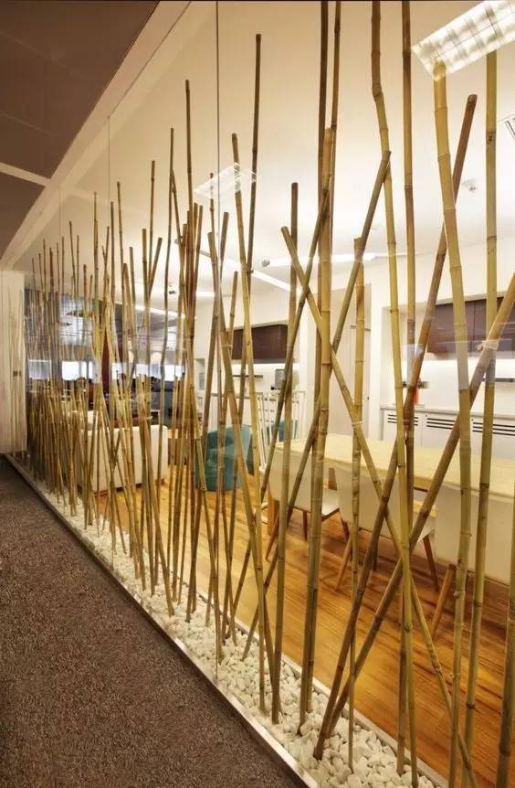 竹竿做的隔斷,稀疏的線條,讓光線在室內自由流通,不會有實墻的那種壓抑感。