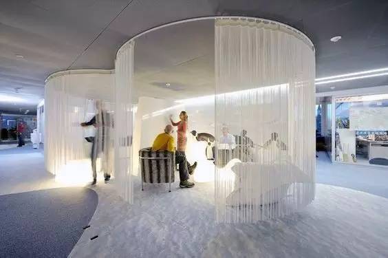 拼湊在一起的白色隔板,輕柔有質感的隔斷展現(xiàn)出來。
