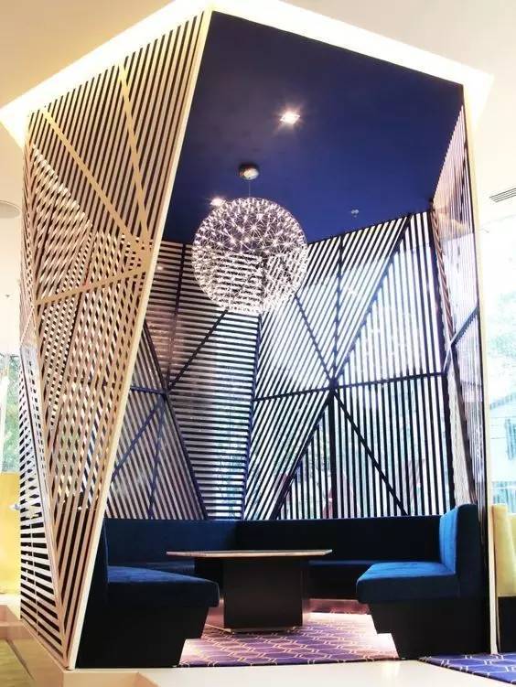 沙發(fā)背后一大方的隔斷,也是鏤空,鐵藝的材質搭配幾何圖案,更為耐看。