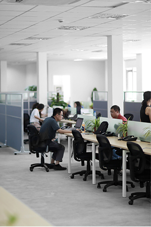 辦公區(qū)域的設(shè)計(jì)是整個(gè)公司里*為自由的區(qū)域,工位連成一片但是距離的保持并不會讓人覺得狹窄擁擠,沒有過分拘束的辦公氛圍讓員工大可以卸下緊張情緒,輕松辦公。綠色植物盆栽在室內(nèi)隨處可見,飛拓企業(yè)對于裝飾及綠化的重視程度可見一斑。