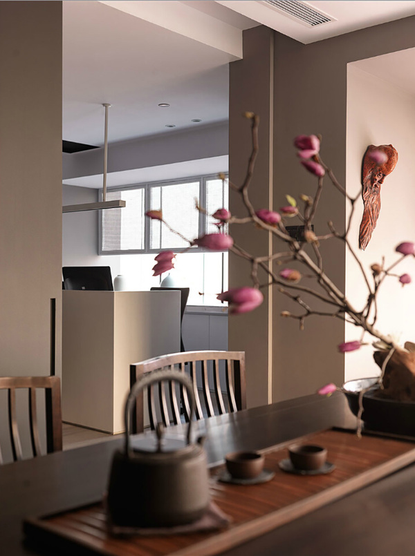中式風(fēng)格辦公室設(shè)計(jì)非常講究空間的層次感,依據(jù)辦公室使用人數(shù)和私密程度的不同,需要做出分隔的功能性空間,一般采用“啞口”或簡約化的“博古 架”來區(qū)分;在需要隔絕視線的地方,則使用中式的屏風(fēng)或窗欞,通過這種新的分隔方式,通常的辦公室就展現(xiàn)出中式家居的層次之美。