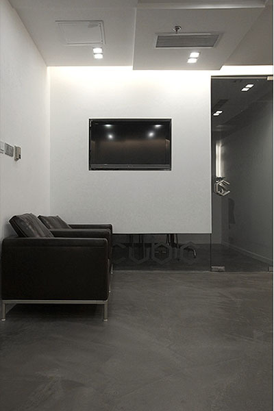 會客區(qū)的裝修采用同樣簡潔的風(fēng)格,不做過多修飾,沙發(fā)座椅、墻面LOGO和一副壁畫。整個辦公室裝修加入了一個立體設(shè)計(jì),在墻面及天花板上都可以看到,能非常有效的營造室內(nèi)空間感。