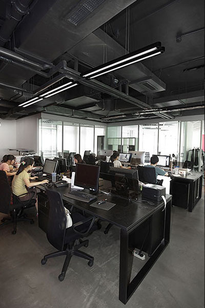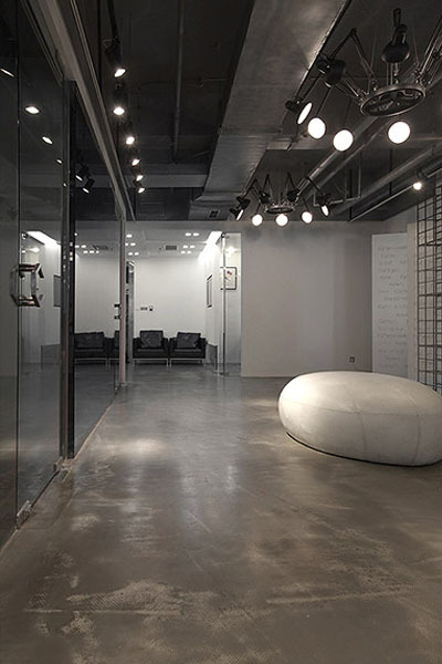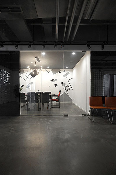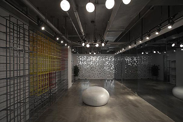 辦公隔斷獨(dú)具個性,鏤空的設(shè)計(jì)讓視線變得模糊又不至于封閉整個空間;地板仿佛是粗糙的水泥地板,事實(shí)上這種樸素的設(shè)計(jì)卻是出于裝修風(fēng)格的要求。