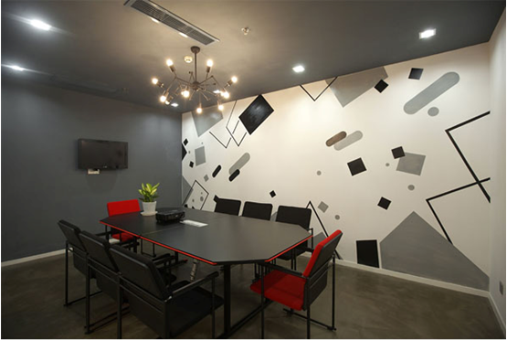 如果說實(shí)木轉(zhuǎn)門上的藝術(shù)創(chuàng)作并不稀奇,那么在空置的背景墻上噴刷一副創(chuàng)意涂鴉,這樣子改變辦公環(huán)境應(yīng)該是****的方法了吧?