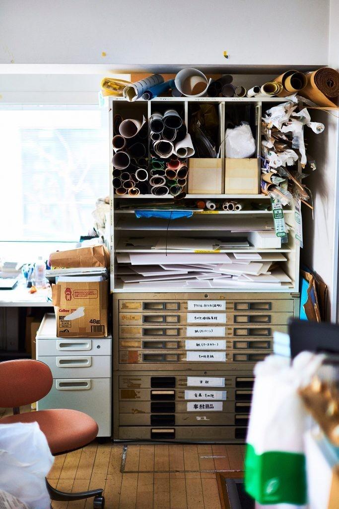 相較于伊東豐雄作品中一貫的簡潔線條,他的辦公室卻意外地被一疊又一疊的合約文件掩埋??闪鑱y的文件似乎以另一種美感沖擊的觀者的視野,讓我們在不同色塊毫無規(guī)律的羅列中,體味到設(shè)計(jì)師的隨手之美。