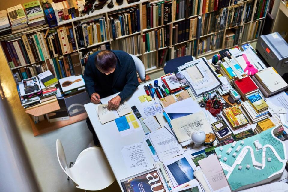 相較于美輪美奐的辦公室,安藤忠雄似乎認(rèn)為亂哄哄才是辦公室的真正魅力。一面又一面的書墻、堆到天花板的文件、看不到桌面的書桌和所有莫名其妙的小東西,凸顯了安藤忠雄不為人知的一面。可即便如此,這間辦公室的雜亂與忙碌也沒有干擾到安藤忠雄的工作,反而還為他提供了無窮的創(chuàng)意。