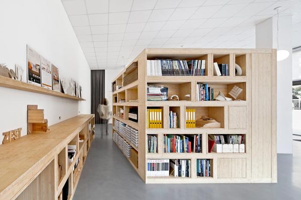 書柜側(cè)面的設(shè)計(jì):當(dāng)我們以為驚喜已經(jīng)沒有的時(shí)候,走到側(cè)面會(huì)發(fā)現(xiàn)設(shè)計(jì)師的想法真是與眾不同,側(cè)面的收納空間與書柜形成一條狹長(zhǎng)的動(dòng)線,在此地給人的感覺仿佛是到了圖書館,讓人不禁再次駐留,隨手拿起書籍就這樣看著,此處的成功在于對(duì)氛圍的把控。