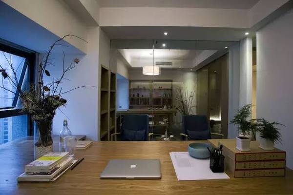 本案中式辦公室設(shè)計以素雅簡單為主,使用單一簡單的木飾材料與白色墻面形成對比增加空間的層次感,空間大量采用留白的手法,插入些造型細節(jié),讓立面顯得干凈而又不會太過蒼白單調(diào),再用暖色燈光中和白色墻面的冷,使整個空間看上去非常的溫馨干凈。