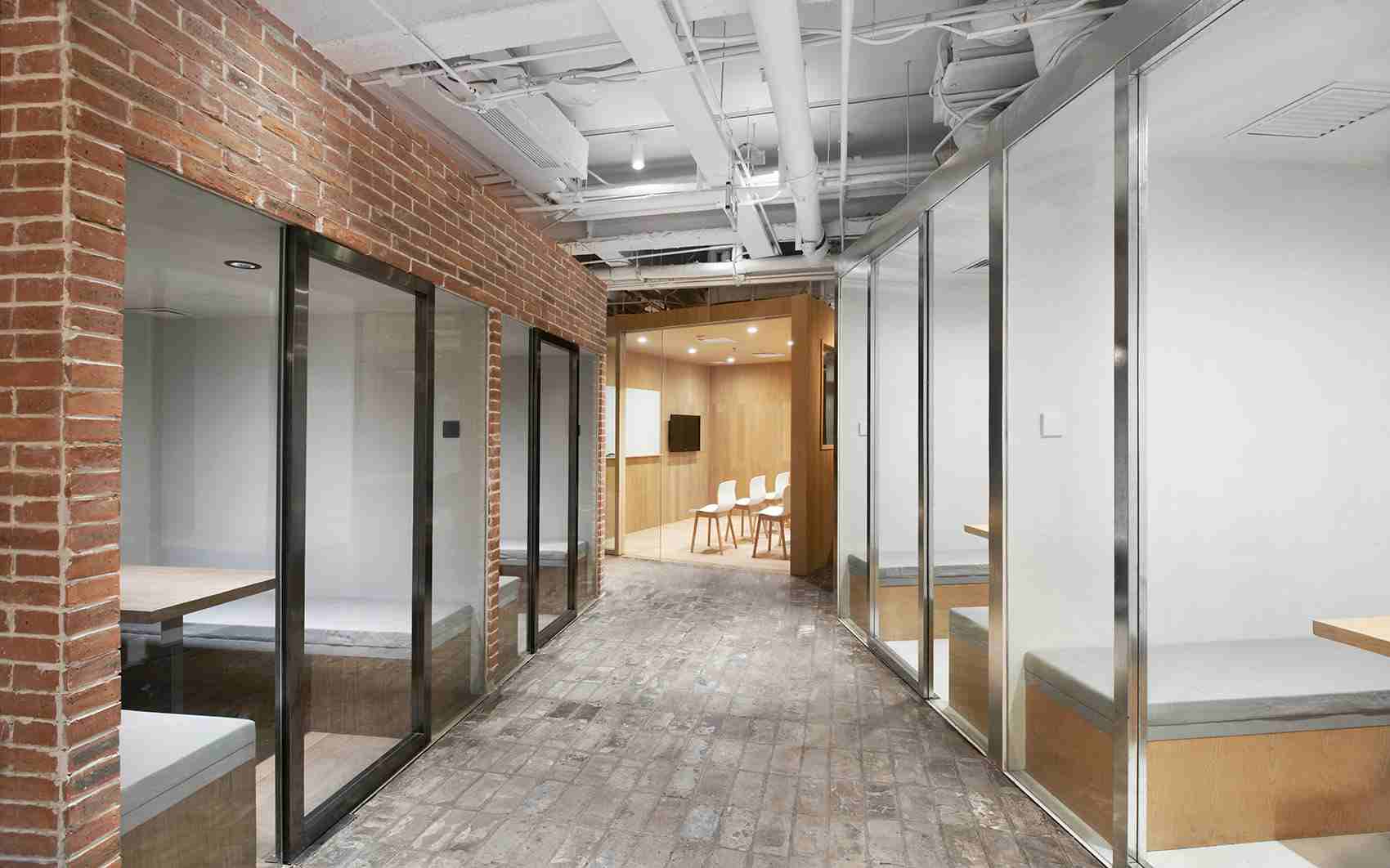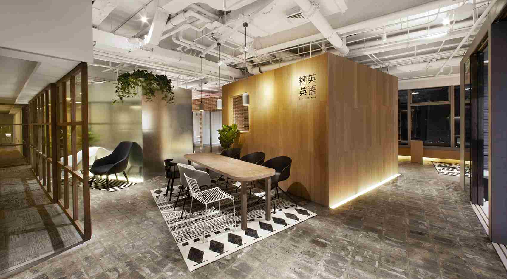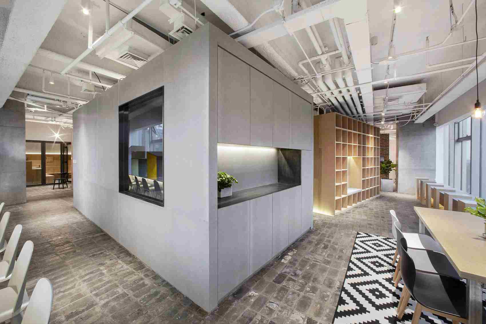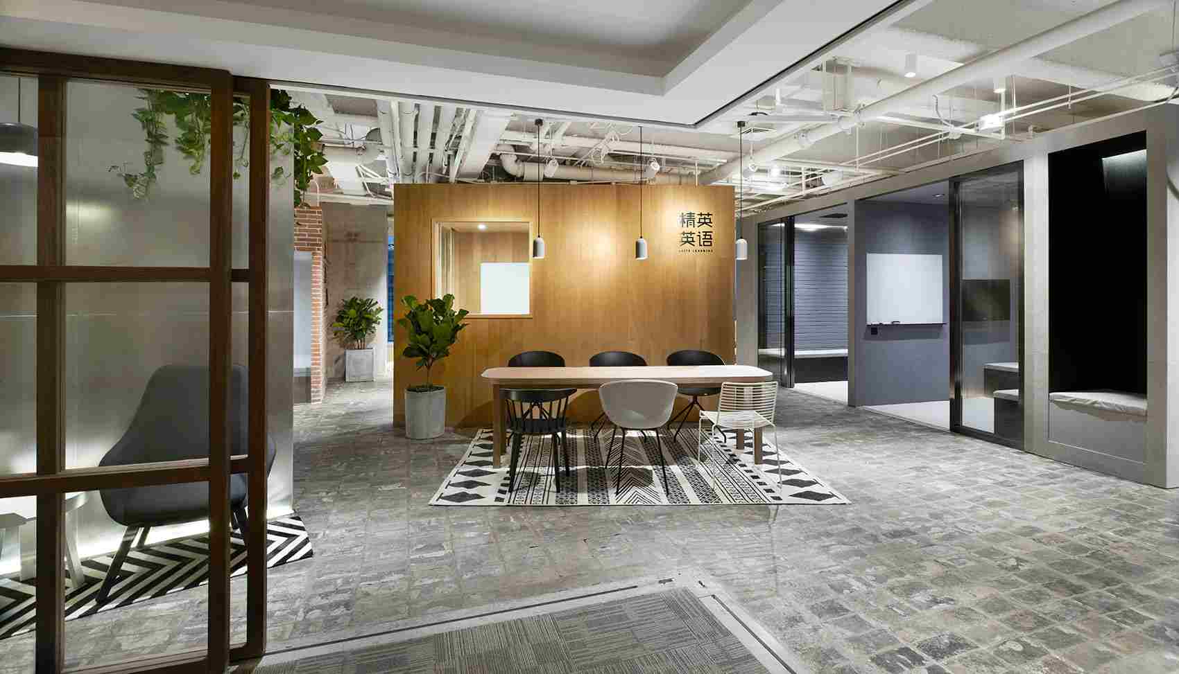 項目位于一座辦公樓內,業(yè)主租賃三個房間作為學校的辦公和培訓區(qū)域。為了整合全部的空間的使用,設計師將其打通成為一整個房間。