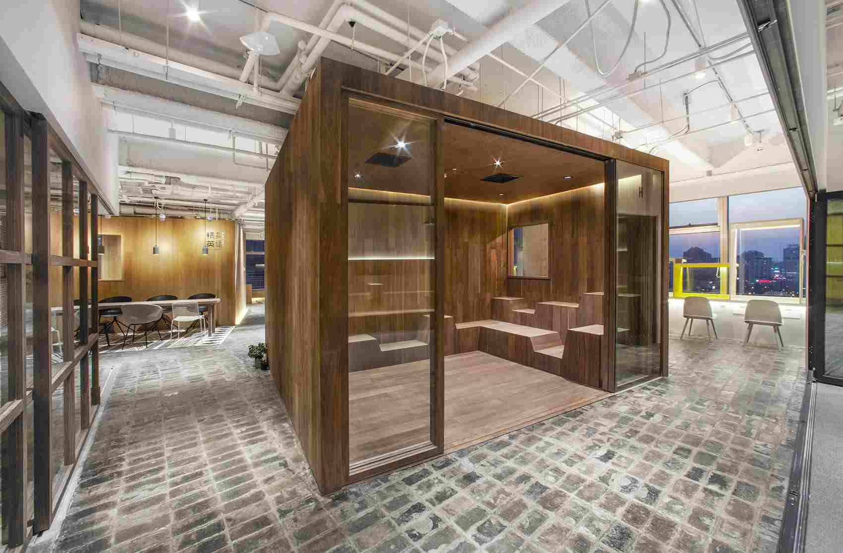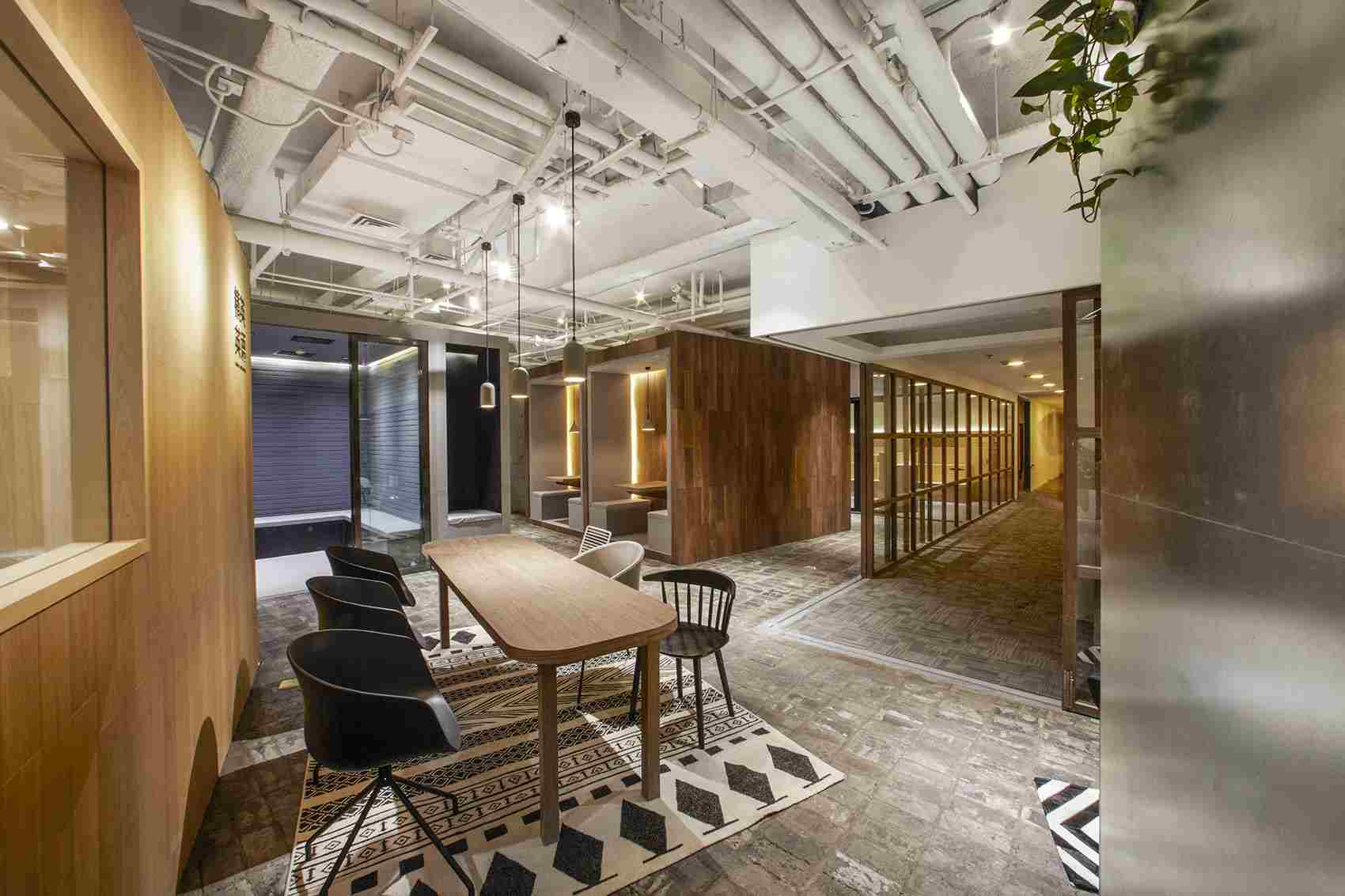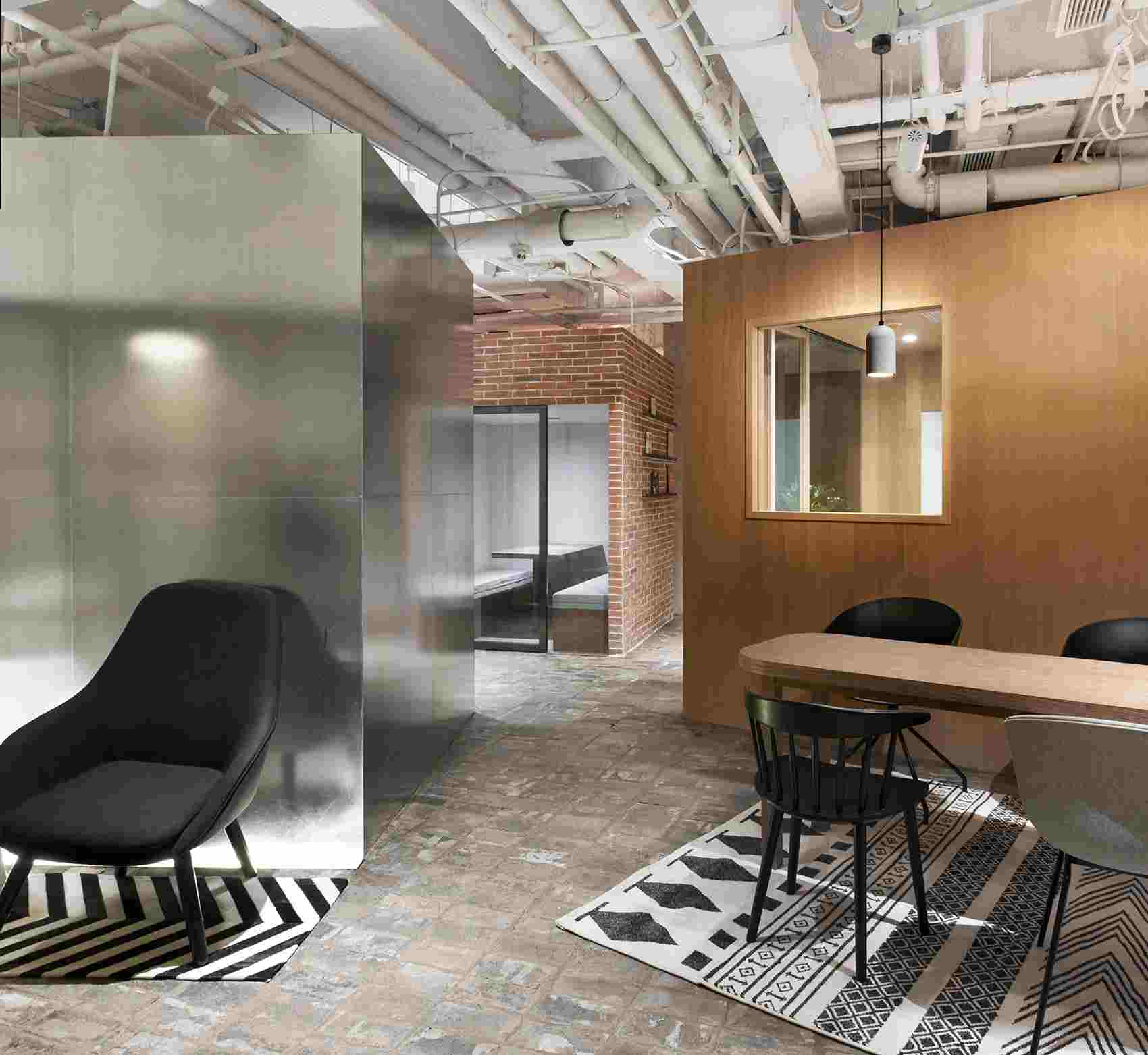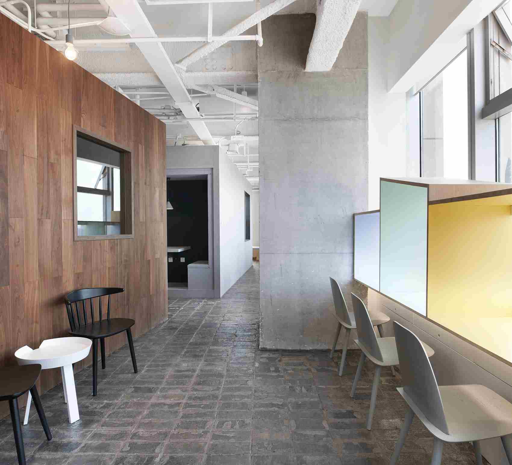 項目位于一座辦公樓內,業(yè)主租賃三個房間作為學校的辦公和培訓區(qū)域。為了整合全部的空間的使用,設計師將其打通成為一整個房間。