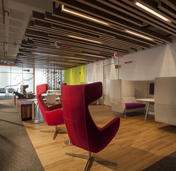 新潮熱烈 使用幾何圖案作為設(shè)計元素,明亮度對比強烈,使用新式裝修材料。適用于新興的電腦資訊業(yè)、媒體行業(yè)。